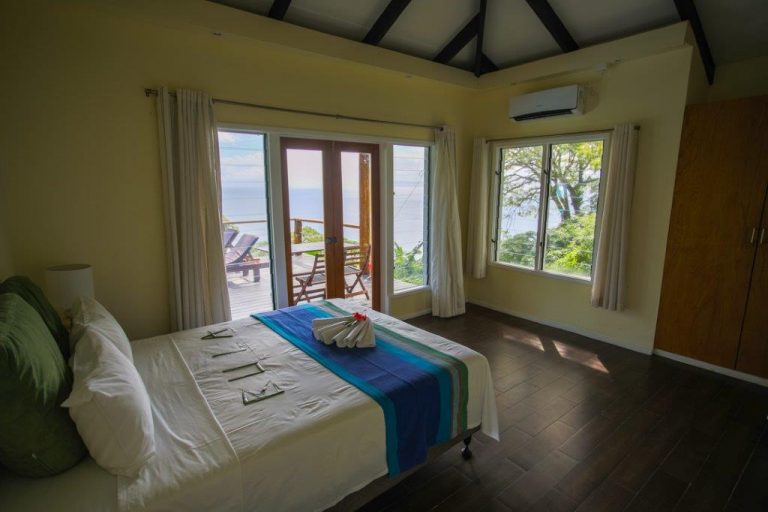Infinity Villa stands high up the hill with superb views over the bay. The deck and infinity swimming pool are ideal for waking to greet the morning, relaxing during the day or winding down with a cocktail in the evening. There’s a lounge and fully equipped kitchen, with air conditioning throughout. There is a short, steep drive up to the villa and you would be well advised to hire a vehicle that can manage the terrain